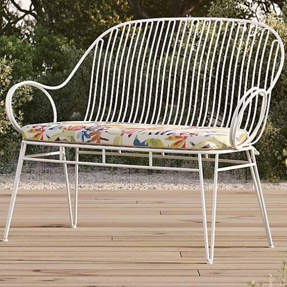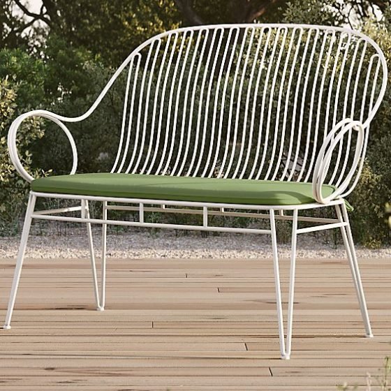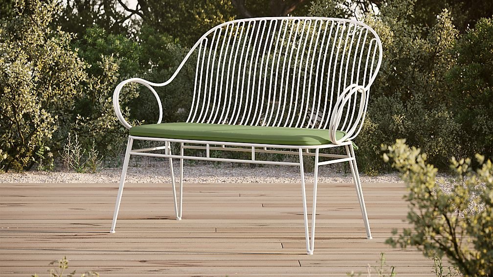 White Metal Outdoor Bench with Cilantro Cushion
